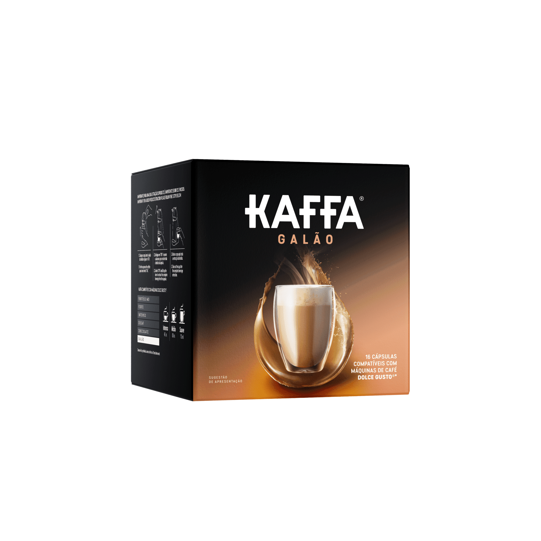 16 kapsúl kompatibilných so systémom Dolce Gusto. Galao je typická portugalská káva s mliekom. Toto sú naše kapsuly vyvinuté výhradne pre použitie v kávovaroch Dolce Gusto. Kaffa Galão je nápoj na báze instantnej kávy. Portugalská káva je niečo, čo by mal vyskúšať každý gurmán tohto aromatického nápoja! Portugalsko je krajina, kde je káva mimoriadne populárna a zvyky a druhy kávy konzumovanej na dennej báze sú úplne odlišné od tých napríklad v Taliansku. Čo by ste mali vedieť o kávovej kultúre v Portugalsku? Ako pripraviť portugalskú kávu alebo slávne galao? Galao je miernym odklonom od tradície rýchleho pitia malých porcií kávy, no stále je neuveriteľne populárne. Galao je nápoj pripravený na báze kávy. Môžete ich prirovnať k latté. Portugalci pripravujú galao kávu na báze espressa (café) naliateho do vysokého pohára a doplneného mliekom. Toto je druh kávy, ktorý si obľúbi každý bez výnimky.