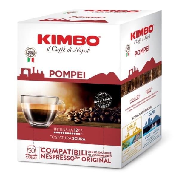 Balenie pripravené s veľkou presnosťou obsahuje 50 kapsúl s praženou a mletou kávou, ktoré sú kompatibilné so systémom Nespresso. Kávové kapsuly Kimbo Pompei sú zmesou starostlivo vybraných zŕn Arabica a Robusta silne pražených, aby sa dosiahla intenzívna a plná chuť.