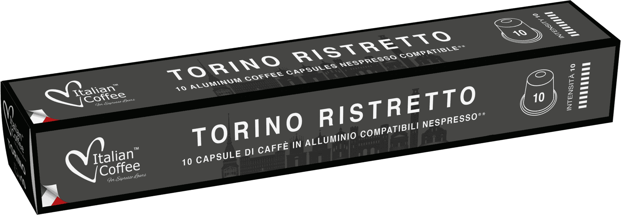 Taliansko sa spája so slnkom, radosťou a vynikajúcou kávou. Tentokrát vám predstavujeme zmes fazule, ktorá odkazuje na jedno z najznámejších miest, Turín. Turín je talianske mesto známe Turínskym plátnom, ktoré je možné vidieť v katedrále sv. Jána Krstiteľa, a jeho tromi palácmi: Kráľovský, Madama a Carignano. Vďaka početným múzeám a iným turistickým atrakciám je pobyt skutočne intenzívny. Chuť kávy Torino Ristretto uzavretá v kapsulách kompatibilných so systémom Nespresso je rovnako silná. Je to perfektná káva na raňajky alebo dezert po večeri. Hliníkové kapsuly Torino Ristretto sú veľmi tesné, takže si dlho zachovávajú jedinečnú arómu a chuť fazule.