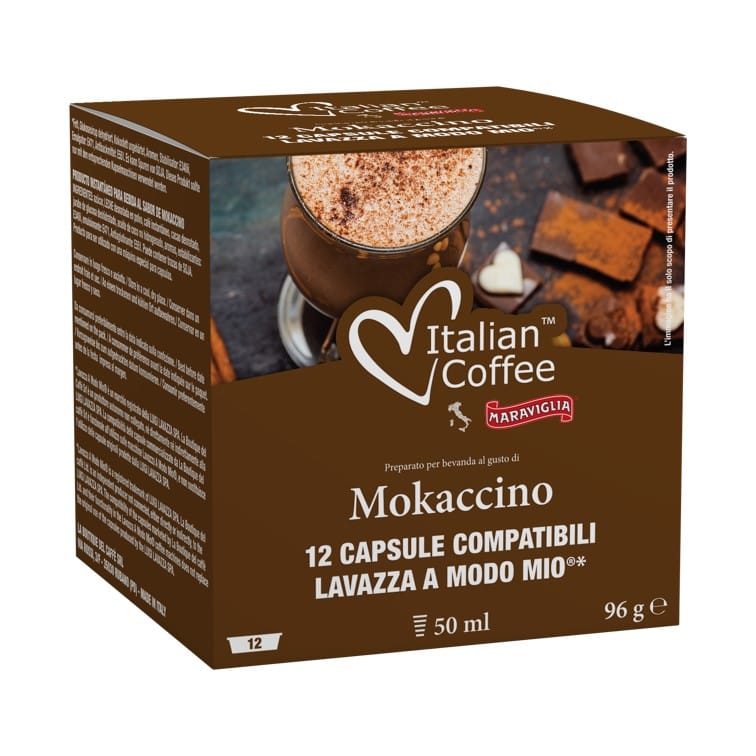 Mokaccino je dokonalá kombinácia kávy, kakaa a mlieka. Chuť je trochu ako čokoládové latte, ktoré určite poteší všetkých, ktorí milujú čokoládu a klasickú taliansku kávu s mliekom. Vďaka tomu, že je v nápoji mlieko, je káva mimoriadne jemnej chuti a krémová. Mokaccino je dezert v šálke, ktorý uspokojí aj tie najnáročnejšie chuťové bunky. و Kapsuly Lavazza a Modo Mio dostupné v našom obchode sú tesne zabalené, aby boli kávové zrná také aromatické, ako boli na úplnom začiatku.