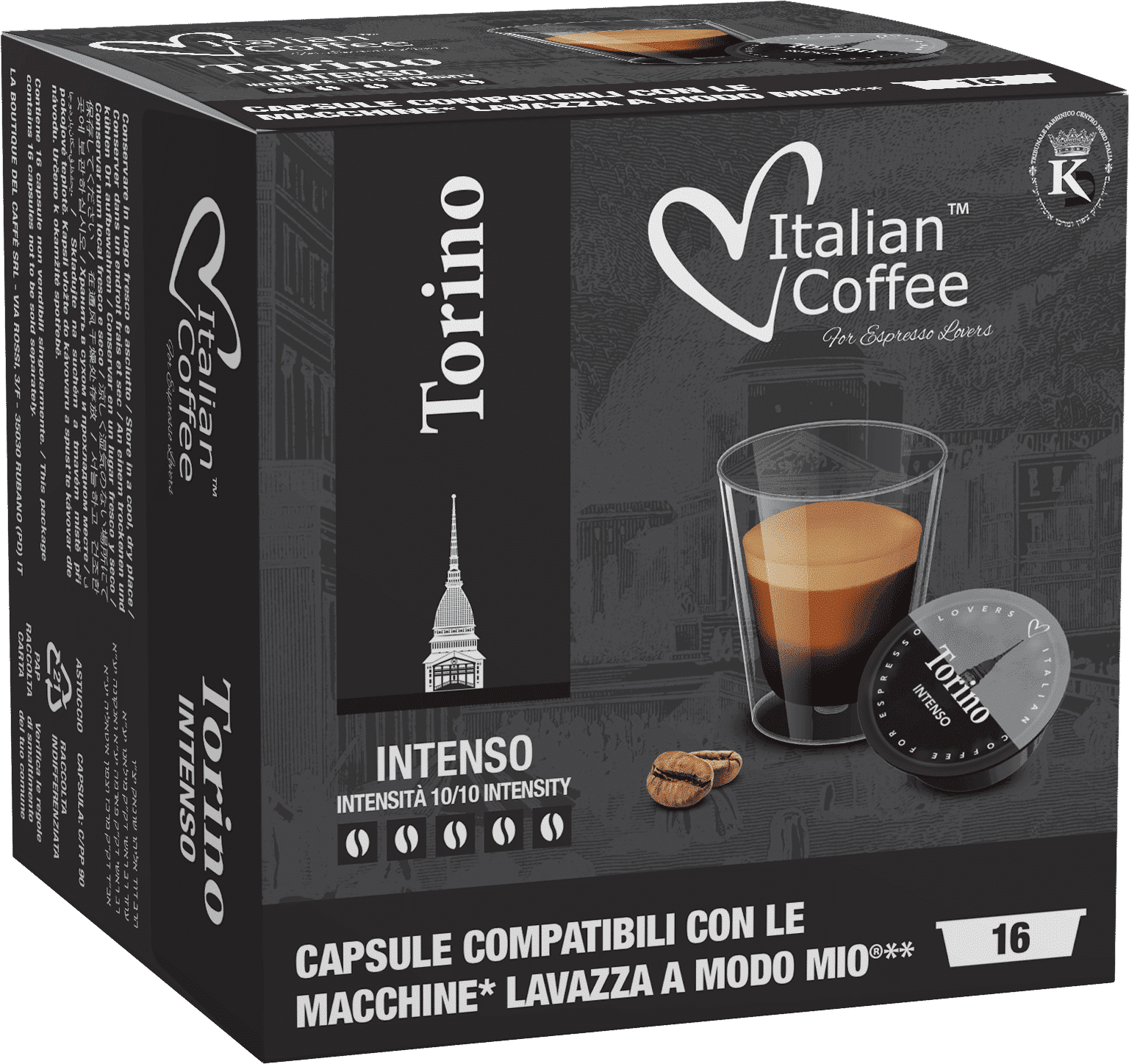 Turín je talianske mesto známe Turínskym plátnom, ktoré je možné vidieť v katedrále sv. Jána Krstiteľa, a jeho tromi palácmi: Kráľovský, Madama a Carignano. Vďaka početným múzeám a iným turistickým atrakciám je pobyt skutočne intenzívny. Chuť kávy Torino Intenso uzavretej v kapsulách Lavazza A Modo Mio je rovnako silná. Je to perfektná káva na raňajky alebo dezert po večeri. Kapsuly Lavazza A Modo Mio sú veľmi tesné, takže si dlho zachovávajú jedinečnú arómu a chuť zŕn.