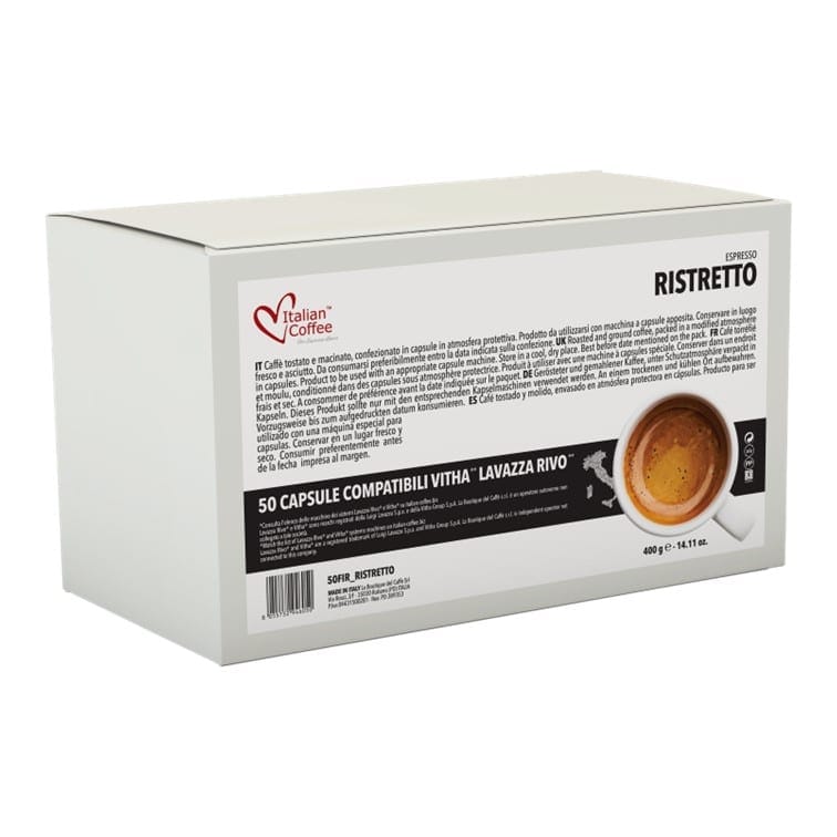 Kávové kapsuly Ristretto sa vyznačujú výraznou chuťou vytvorenou pre fajnšmekrov, ktorí milujú redukované, tmavé espresso s hustou konzistenciou. Obsahuje najkvalitnejšie zrná Robusty z najlepších kávových plantáží v Ugande a Indii. Po uvarení dostaneme pravú taliansku krátku kávu s intenzívnou chuťou a mimoriadne krémovou textúrou. Predpokladá sa, že ristretto má menej horkú chuť ako espresso a obsahuje menej kofeínu, aj keď stále dáva povestný „nakopnutie“.